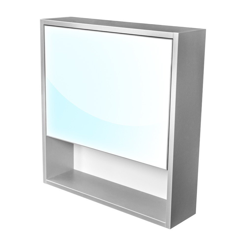 CA.G1V je závěsná skříňka s jedním výklopem určená především pro uskladnění prostředků denní a osobní hygieny. Dvířka jsou vyrobena z AL rámu a osazena zrcadlem.