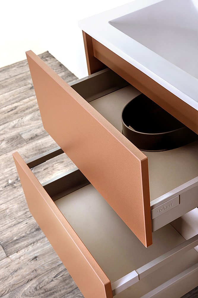 S mírným přesahem přes hrany skříňky a vestavěným přepadem perfektně doplňují jednoduchý, ale funkční vzhled celé kolekce Amsterdam, který podtrhuje použití úchytových lišt z eloxovaného hliníku.