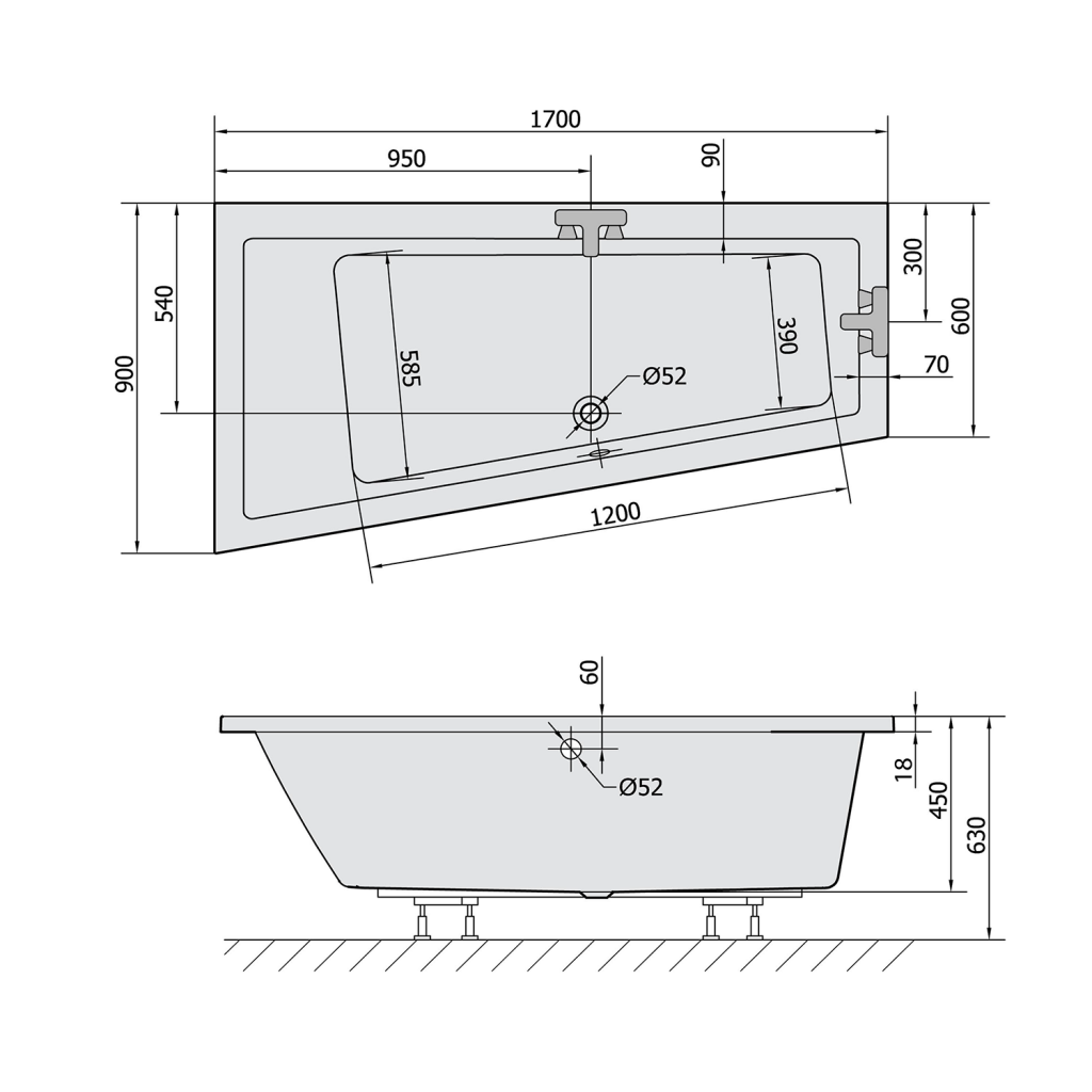 POLYSAN - ANDRA L SLIM asymetrická vana 170x90x45cm, bílá (81111S)