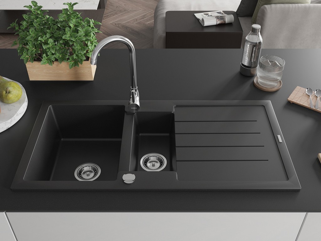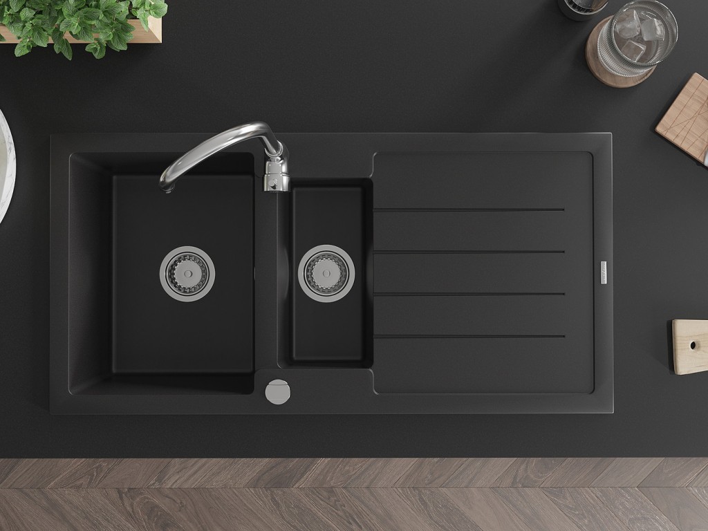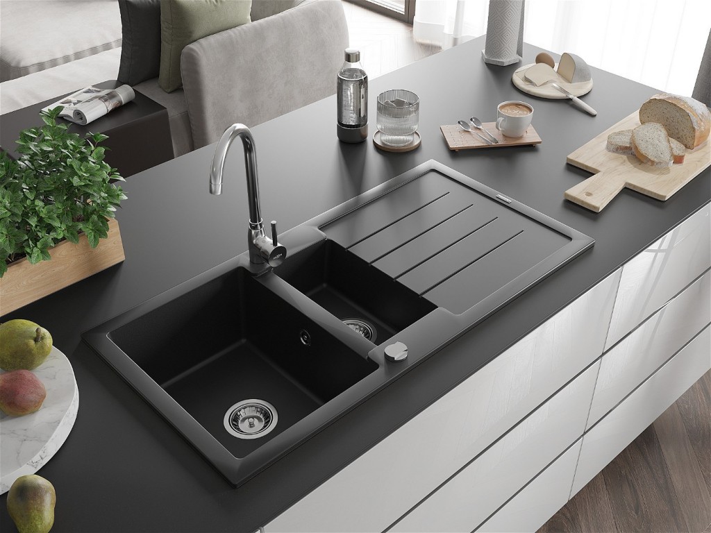 Speciální složení materiálu použitého pro výrobu je žula (80% žula – kámen, 20% pryskyřice) a jeho vysoká hustota garantuje bezpečné používání výrobku, a proto jsou granitové dřezy tak oblíbené. Díky povrchové úpravě nejsou na granitovém dřezu vidět zaschlé kapky, je odolný vůči skvrnám a neztrácí barvu. Povrch je odolný vůči nárazu, poškrábání, změně barvy, vysoké teplotě a teplotním šokům. Při jejich údržbě se používají obvyklé čistící prostředky nebo prostředky na nádobí s jemným abrasivem. Výhodou je rozmanitá barevná nabídka.