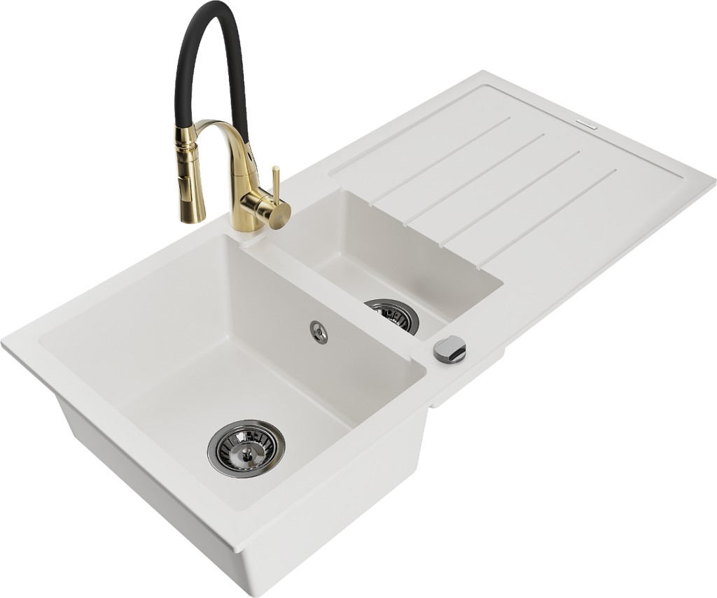Speciální složení materiálu použitého pro výrobu je žula (80% žula – kámen, 20% pryskyřice) a jeho vysoká hustota garantuje bezpečné používání výrobku, a proto jsou granitové dřezy tak oblíbené. Díky povrchové úpravě nejsou na granitovém dřezu vidět zaschlé kapky, je odolný vůči skvrnám a neztrácí barvu. Povrch je odolný vůči nárazu, poškrábání, změně barvy, vysoké teplotě a teplotním šokům. Při jejich údržbě se používají obvyklé čistící prostředky nebo prostředky na nádobí s jemným abrasivem. Výhodou je rozmanitá barevná nabídka.