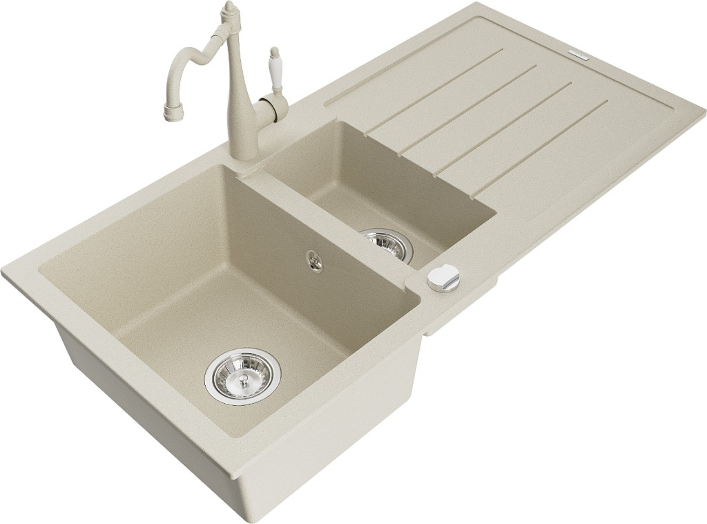 Speciální složení materiálu použitého pro výrobu je žula (80% žula – kámen, 20% pryskyřice) a jeho vysoká hustota garantuje bezpečné používání výrobku, a proto jsou granitové dřezy tak oblíbené. Díky povrchové úpravě nejsou na granitovém dřezu vidět zaschlé kapky, je odolný vůči skvrnám a neztrácí barvu. Povrch je odolný vůči nárazu, poškrábání, změně barvy, vysoké teplotě a teplotním šokům. Při jejich údržbě se používají obvyklé čistící prostředky nebo prostředky na nádobí s jemným abrasivem. Výhodou je rozmanitá barevná nabídka.