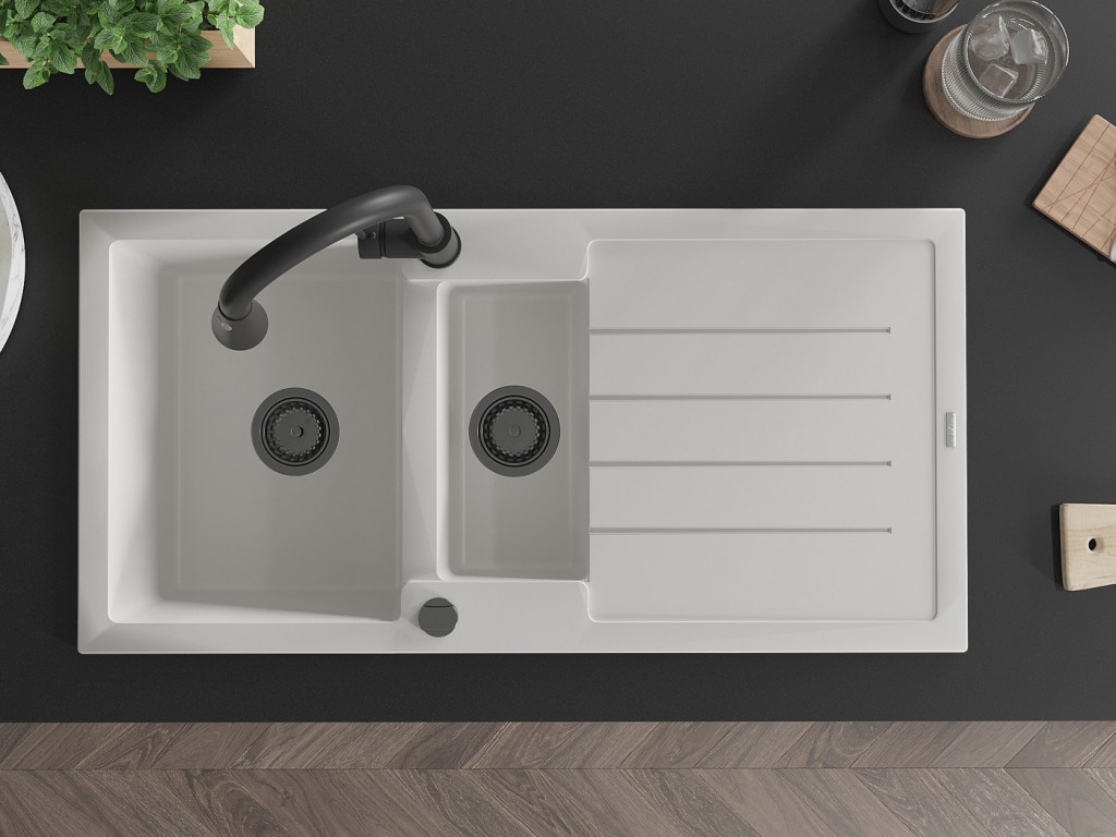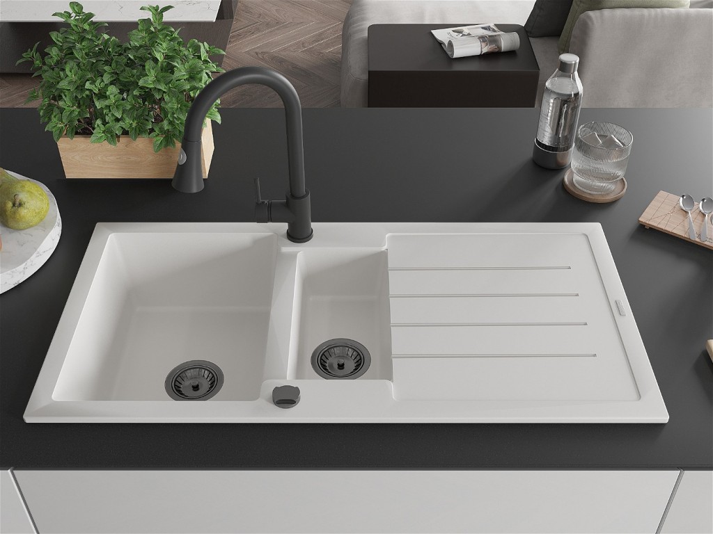 Speciální složení materiálu použitého pro výrobu je žula (80% žula – kámen, 20% pryskyřice) a jeho vysoká hustota garantuje bezpečné používání výrobku, a proto jsou granitové dřezy tak oblíbené. Díky povrchové úpravě nejsou na granitovém dřezu vidět zaschlé kapky, je odolný vůči skvrnám a neztrácí barvu. Povrch je odolný vůči nárazu, poškrábání, změně barvy, vysoké teplotě a teplotním šokům. Při jejich údržbě se používají obvyklé čistící prostředky nebo prostředky na nádobí s jemným abrasivem. Výhodou je rozmanitá barevná nabídka.