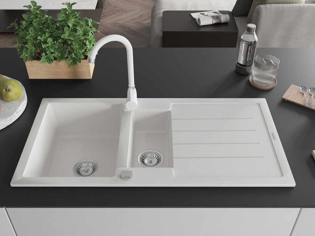 Speciální složení materiálu použitého pro výrobu je žula (80% žula – kámen, 20% pryskyřice) a jeho vysoká hustota garantuje bezpečné používání výrobku, a proto jsou granitové dřezy tak oblíbené. Díky povrchové úpravě nejsou na granitovém dřezu vidět zaschlé kapky, je odolný vůči skvrnám a neztrácí barvu. Povrch je odolný vůči nárazu, poškrábání, změně barvy, vysoké teplotě a teplotním šokům. Při jejich údržbě se používají obvyklé čistící prostředky nebo prostředky na nádobí s jemným abrasivem. Výhodou je rozmanitá barevná nabídka.