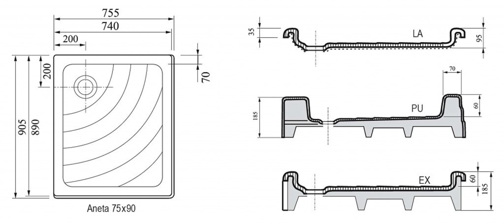 - v provedení: EX – samonosná bez panelu, určená k obložení běžnými obkladovými materiály