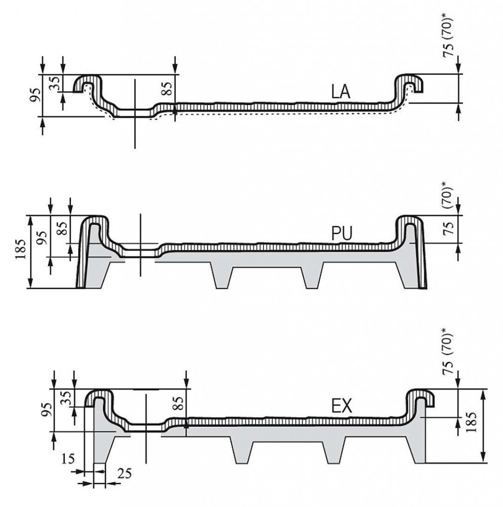 - v provedení: EX – samonosná bez panelu, určená k obložení běžnými obkladovými materiály