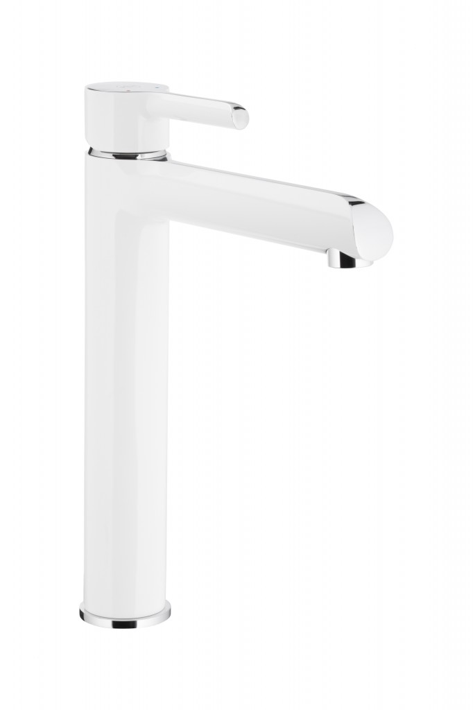 Vysoká umyvadlová baterie na desku v chrom/ bílém provedení. Svou výškou 30,2 cm se bude perfektně vyjímat vedle vašeho umyvadla a zároveň poskytne dostatek prostoru pro mytí rukou.