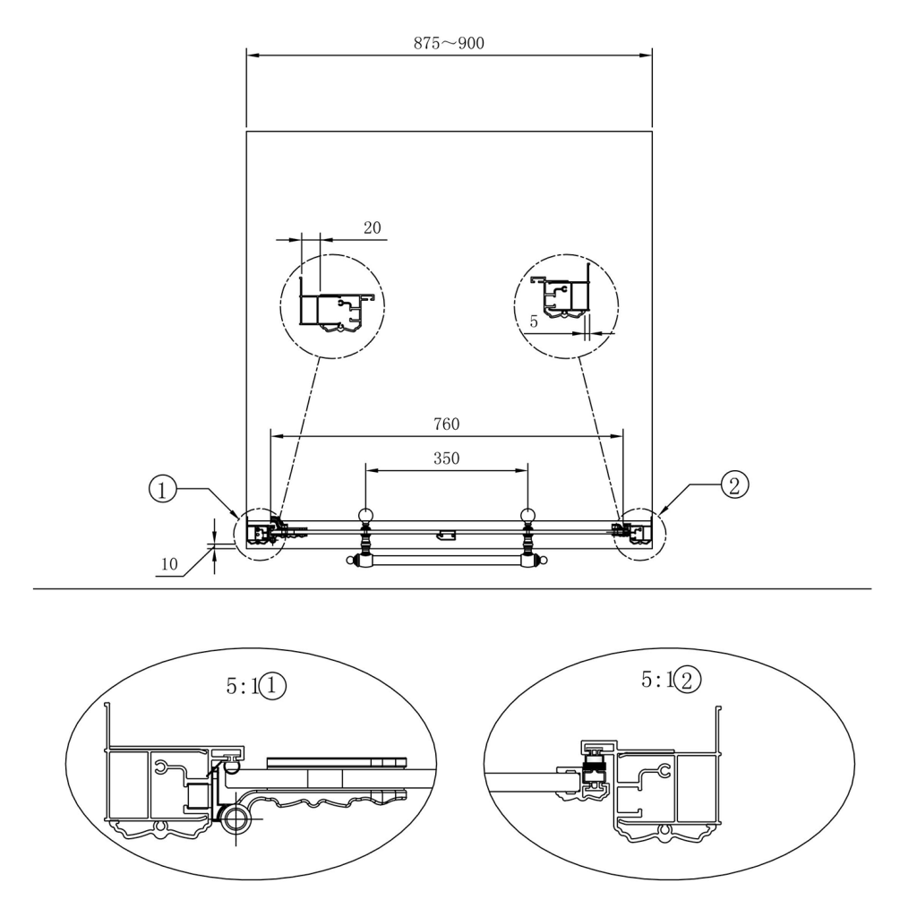 UPOZORNĚNÍ! Při montáži zástěny bez vaničky je nutná příprava vyspádované podlahy tak, aby zástěna byla usazena na rovinu mimo vyspádovanou plochu.