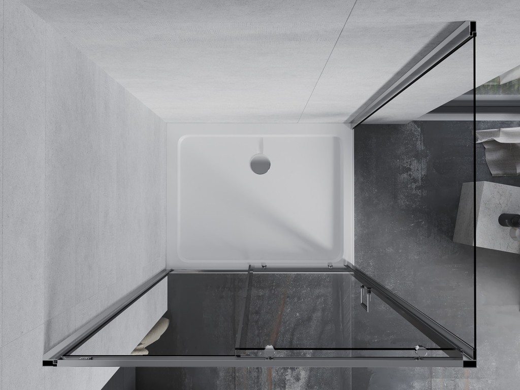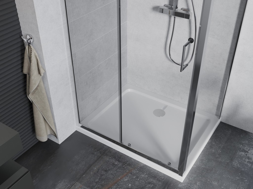 Sprchové dveře z kolekce Mexen Apia. Funkční posuvné dveře se spolehlivými válečky, které zaručují plynulé a tiché posouvání. Povlak na skle usnadňuje jejich čištění, takže si můžete déle užívat dokonale průhledné a lesklé sklo. Tvrzené a bezpečné sklo a povrchové prvky dveří jsou vyrobeny z nerezového materiálu pokrytého vysoce lesklým chromem. Hliníkový profil s prahem, který zaručuje dokonalou těsnost.