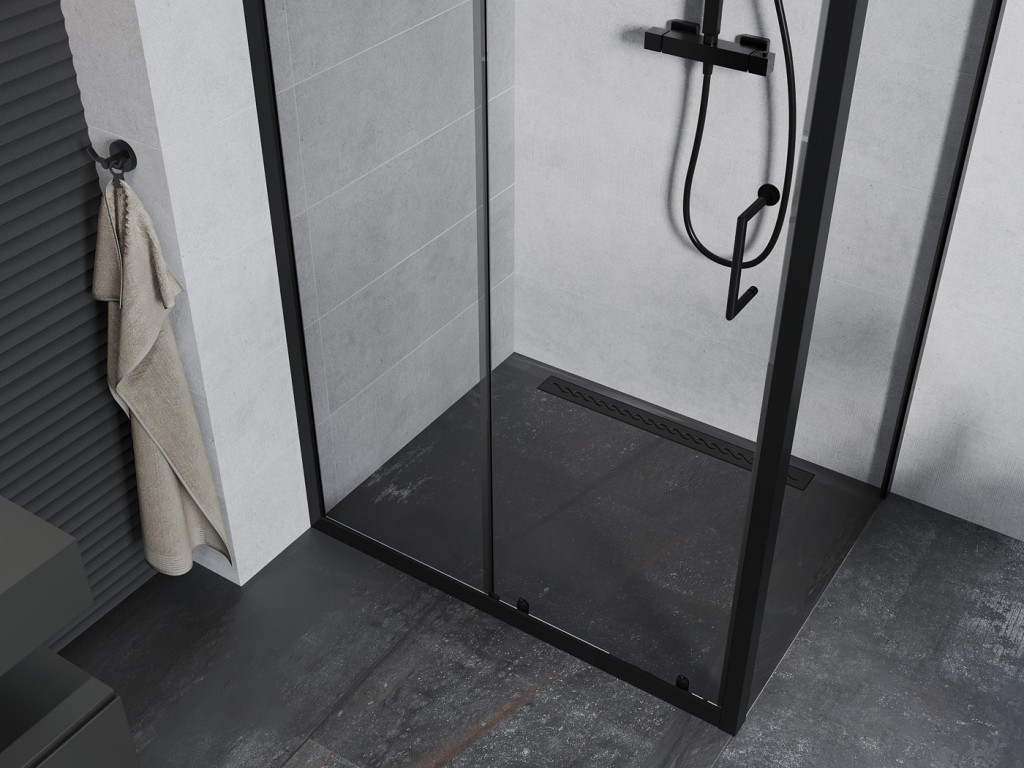 Apia posuvné sprchové dveře 140 cm, transparent, černá (845-140-000-70-00)