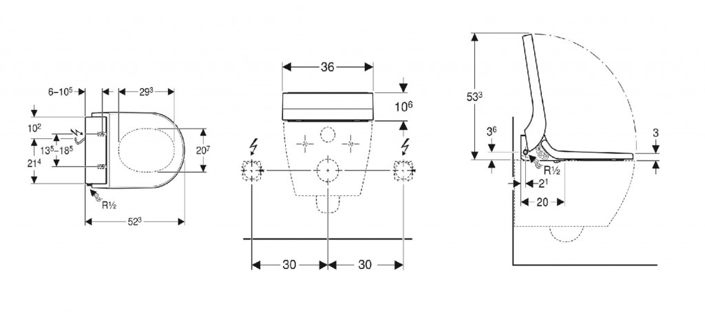 - polohování ramene s tryskou v pěti stupních pomocí aplikace Geberit Home