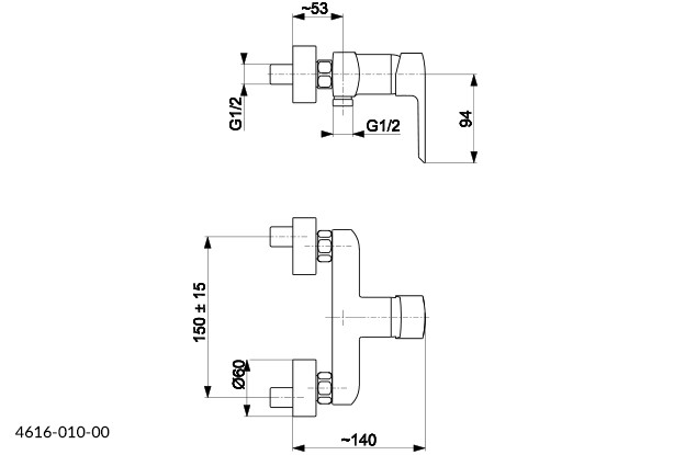 Nástěnná sprchová baterie AQUAMARYN od výrobce KFA ARMATURA s roztečí 150 mm bez příslušenství.
