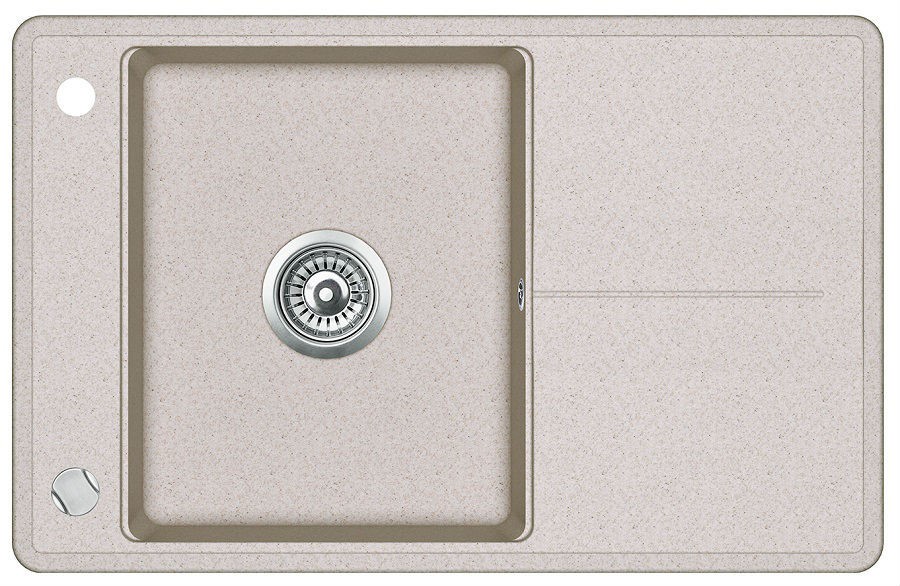 Model granitového kuchyňského dřezu Aquasanita Bella 780.0E je svým umístěním baterie netradiční, ale zároveň velmi praktický. Vanička o šířce 37 cm a hloubce 20 cm poskytne dostatek prostoru na umytí velkých nádob jako jsou objemné hrnce nebo pečící plechy. Praktická je i odkapová část dřezu.