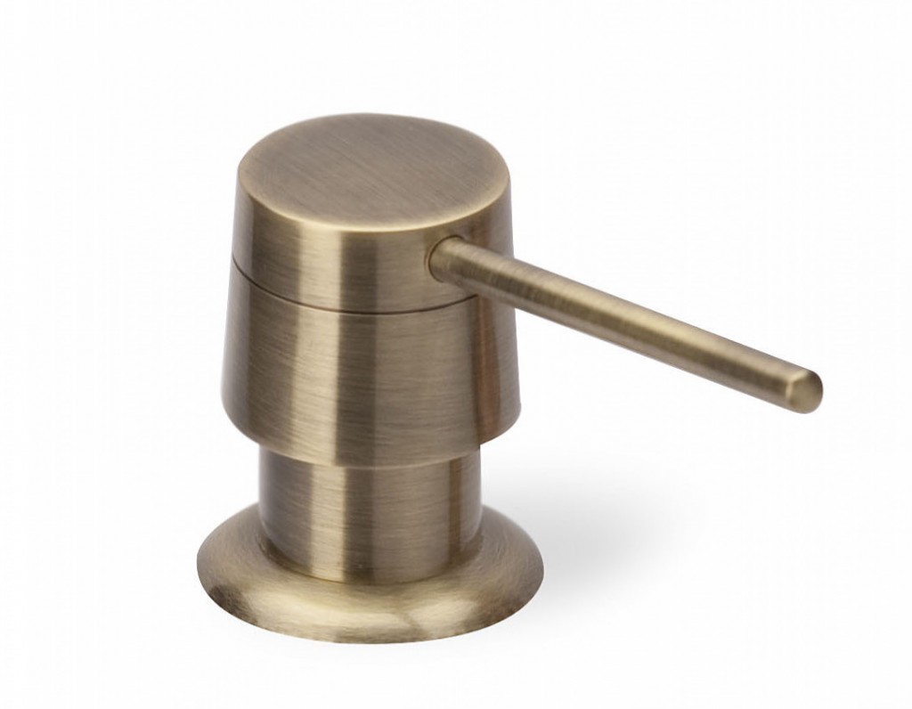 Nejprodávanější výrobce dřezů Aquasanita představuje svou řadu manuálních dávkovačů řady D-001 v několika barevných variantách: chrom, černá, staromosaz a měď.