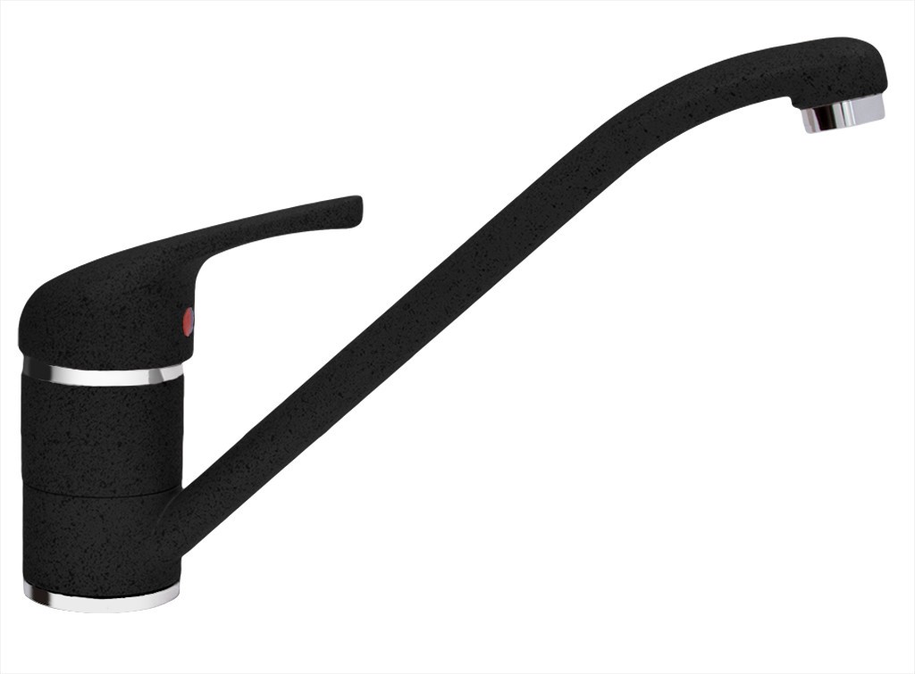 Povrch dřezové baterie je vyroben z drcené žuly. Černá granitová baterie, ale také písková, bílá nebo šedá skvěle doplní granitový dřez v podobných odstínech. Samozřejmě je možné tuto pákovou baterii použít i u dřezů nerezových, kde ozvláštní celkový dojem mycího centra.