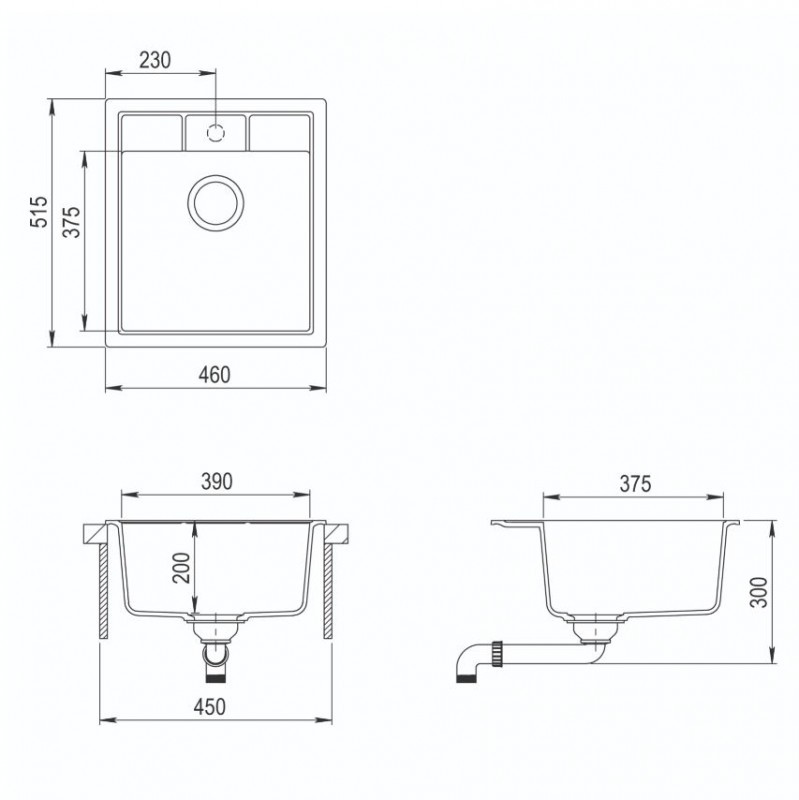 Granitový dřez Aquasanita Nova 460E, je dřez bez odkapové plochy. Díky tomuto dřezu ušetříte místo na pracovní lince. Dřez doporučujeme zejména do menších kuchyní, kde se setří místem nebo, kde se k mytí nádobí upřednostňuje myčka na nádobí. Rovněž mycí vanička je menší.