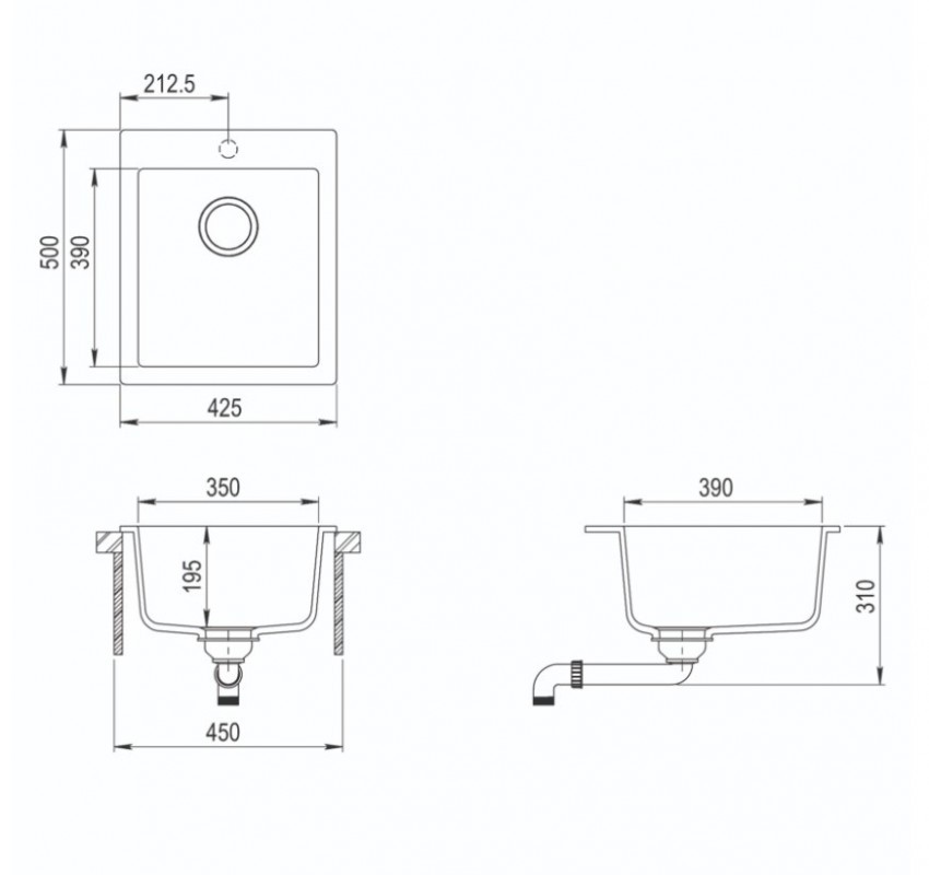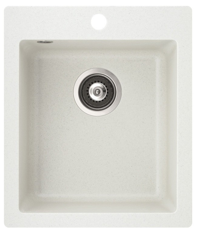Na pohled menší dřez, poskytuje i napříč tomu, dostatek prostoru pro pohodlné umývání nádobí. Zadní plocha dřezu umožňuje instalaci kuchyňské baterie do dřezu (otvor je již vytvořen). Dřez je určen do skříňky od 45 cm.