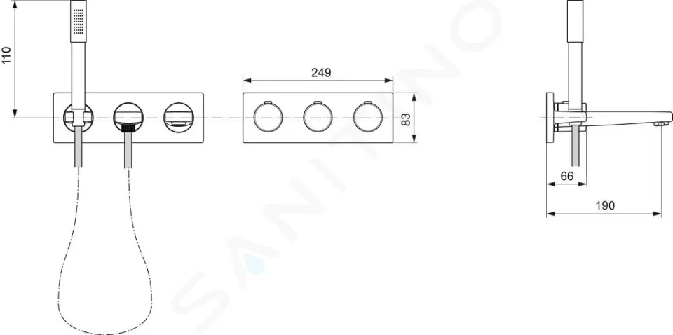 - ovládací ventily ruční sprchy a vanové vpusti