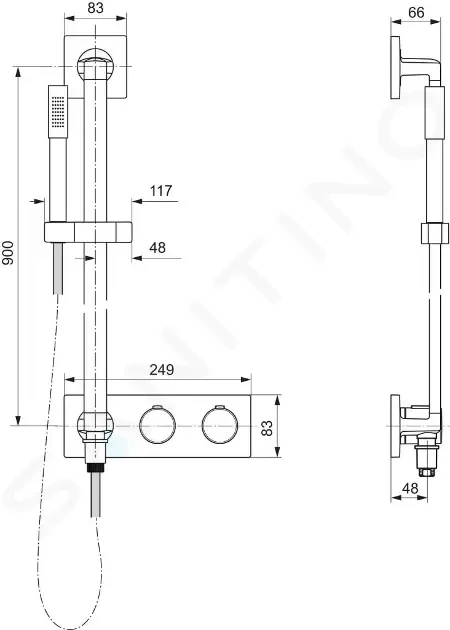 ruční sprchu, hadici Idealflex a sprchovou tyč