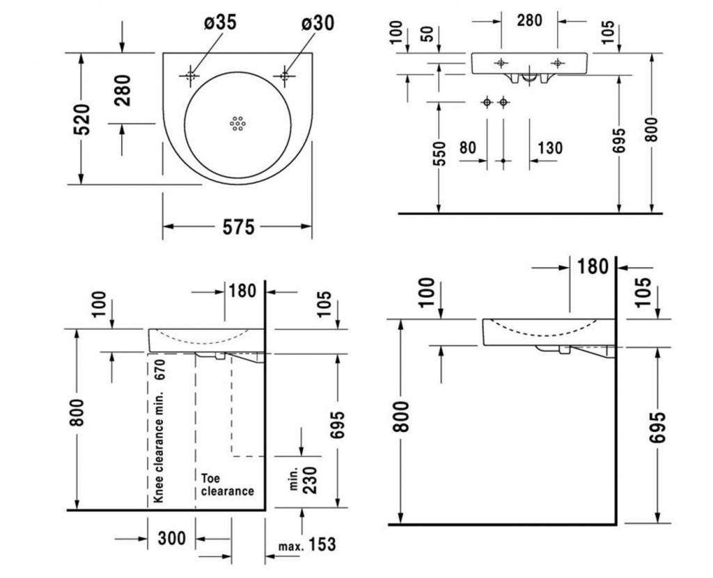 Keramické umyvadlo, bezbariérové