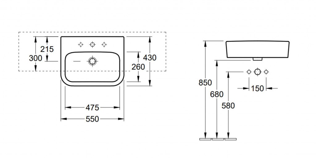 Polozápustné umyvadlo na desku nebo koupelnovou skříňku