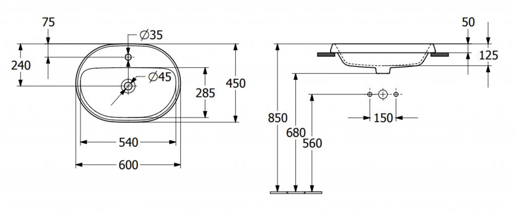 Oválné vestavné umyvadlo