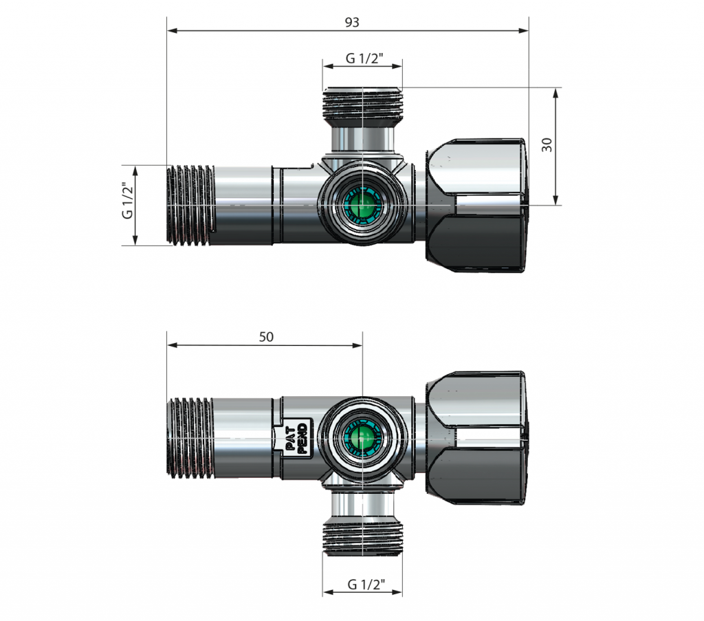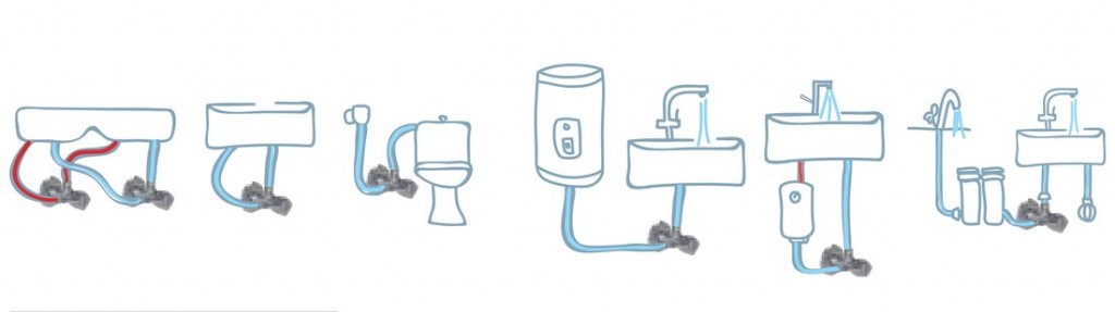 Rohový kombinovaný ventil A-80 obsahuje dva vývody vody, které lze uzavírat a otevírat nezávisle na sobě. Oba vývody je také možné současně otevřít i zavřít.