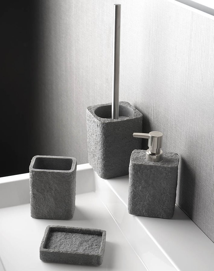 ARIES - série koupelnových doplňků na postavení vyrobených z polyresinu s imitací kamene.