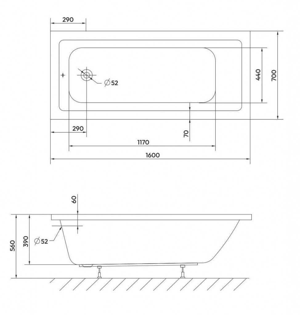 Vanová odtoková souprava a podpora vany nejsou součástí balení, je třeba je objednat zvlášť.