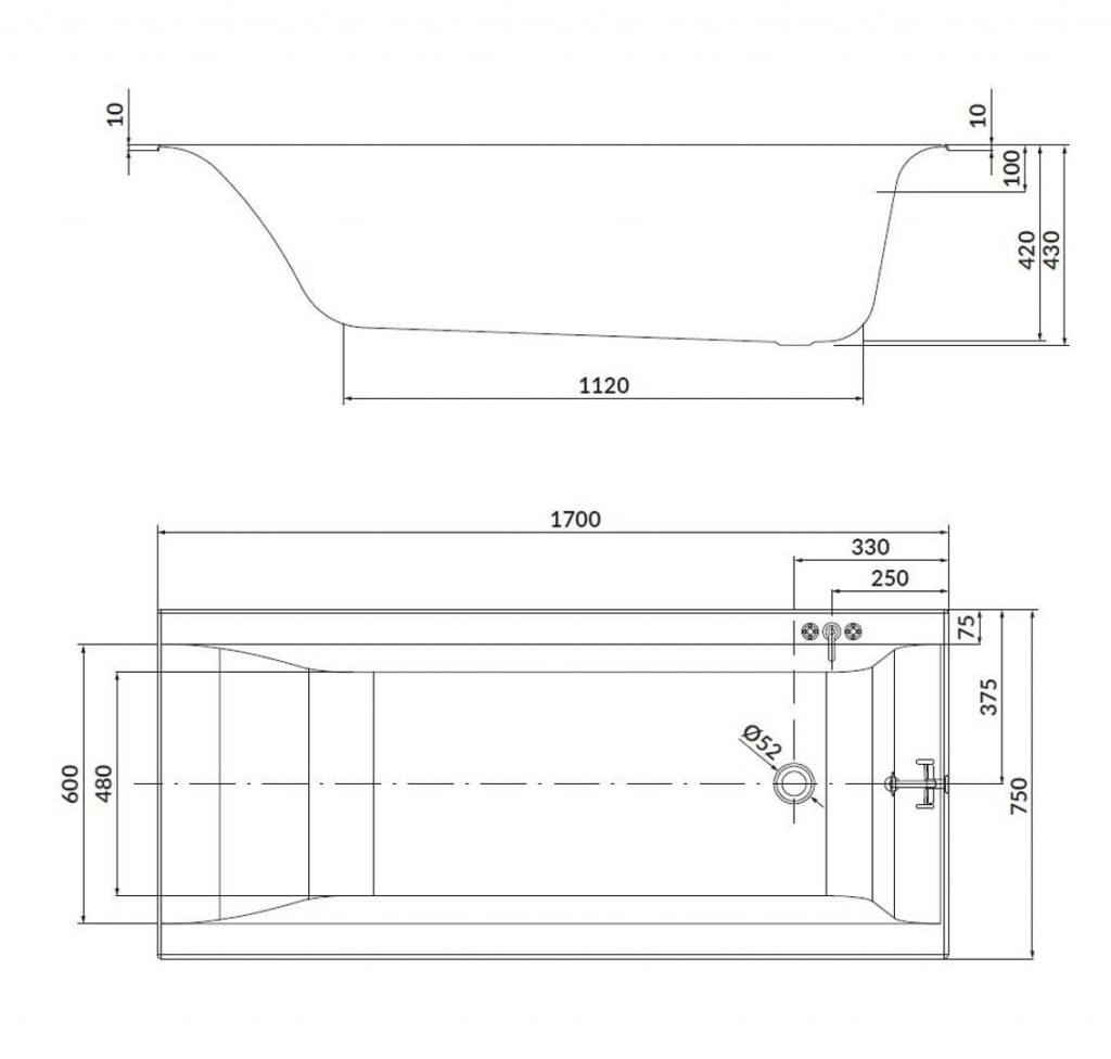 Obdélníková vana rozměry: 1700 x 750 mm materiál: sanitární akrylát objem: 185 l průměr odpadu: 52 mm výškově nastavitelná podpora vany je součástí dodávky Vanovou odtokovou soupravu je třeba objednat zvlášť. (celý popis)