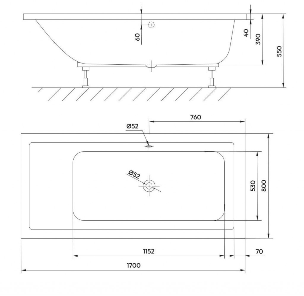 Vanová odtoková souprava a podpora vany nejsou součástí balení, je třeba je objednat zvlášť.