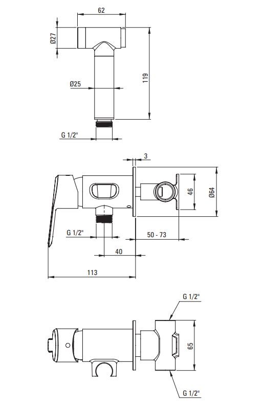 Nástěnná, podomítková bidetová baterie z originální kolekce Arnika bude dokonalým doplňkem koupelny zdobené dalšími prvky z kolekce. Tato jednopáková baterie je vybavena funkční bidetovou ruční sprchou s vypínačem start-stop, integrovanou s baterií pomocí 1,5 m dlouhé sprchové hadice. Tlačítko start/stop umožňuje zapnout a vypnout proud ve zvolený čas, což je nejen mimořádně pohodlné, ale také snižuje spotřebu vody. Bidetová baterie má Cool-out ruční sprchu, která se vlivem horké vody nezahřívá. Bidetová sprška zaručuje větší funkčnost baterie, pomáhají udržovat osobní hygienu, stejně jako udržovat čistotu v koupelně.