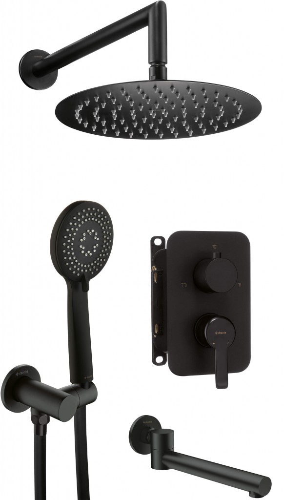 Sprchový set pod omítku má všechny potřebné prvky k vybavení sprchy. Vysoká kvalita použitých materiálů mnohokrát testovaných v laboratorních podmínkách zajišťuje bezporuchový provoz. Inovativní design a elegantní povrchová úprava upoutá pozornost a zapuštěná instalace opticky zvětšuje prostor. Tradiční řešení umožňuje získat prostor například pro přídavnou polici na kosmetiku nebo věšák. Díky tomu můžete snáze a rychleji uklidit celou místnost. Jedná se o model s vanovým výtokem.