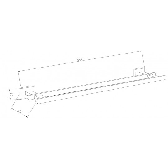 Kovový dvojitý držák ručníků ARNO od výrobce MEXEN je určen k instalaci vrtaného spoje. Držák je široký 54 mm, vysoký 35 mm a hloubka od stěny je 112 mm