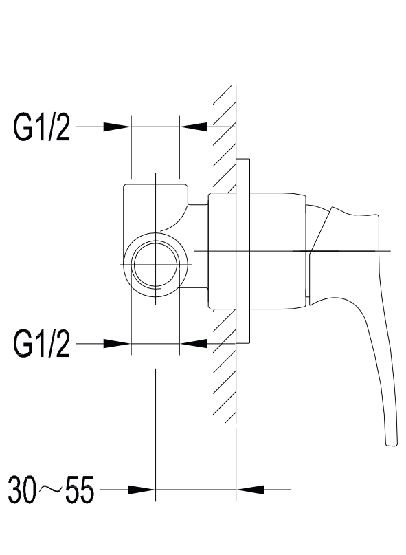 - dva vstupy (pro horkou a studenou vodu): 1/2", jeden výstup smíšené vody: 1/2"