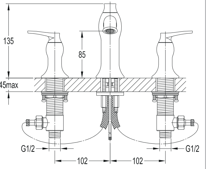 Tříprvková stojánková baterie s instalací do umyvadla je vyrobena z kvalitní mosazi a opatřena keramickou kartuší, která zajišťuje plynulou a přesnou regulaci proudu vody. Inovativní technologická řešení umožňují snížit spotřebu vody o polovinu a zajišťují nejvyšší komfort používání.