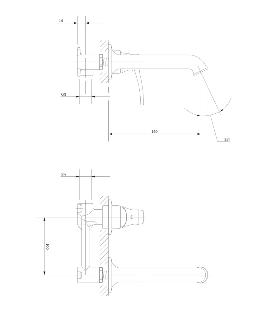 Umyvadlová páková baterie ART DECO s podomítkovou montáží a pevným výtokem. Baterie je vyrobena z kvalitní mosazi třídy a je vybavena nejkvalitnější keramickou kartuší, která zajišťuje plynulé a přesné řízení průtoku vody.