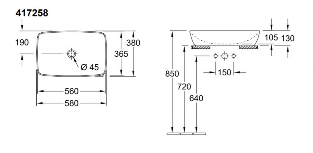 Umyvadlo k postavení na desku, nebo koupelnovou skříňku