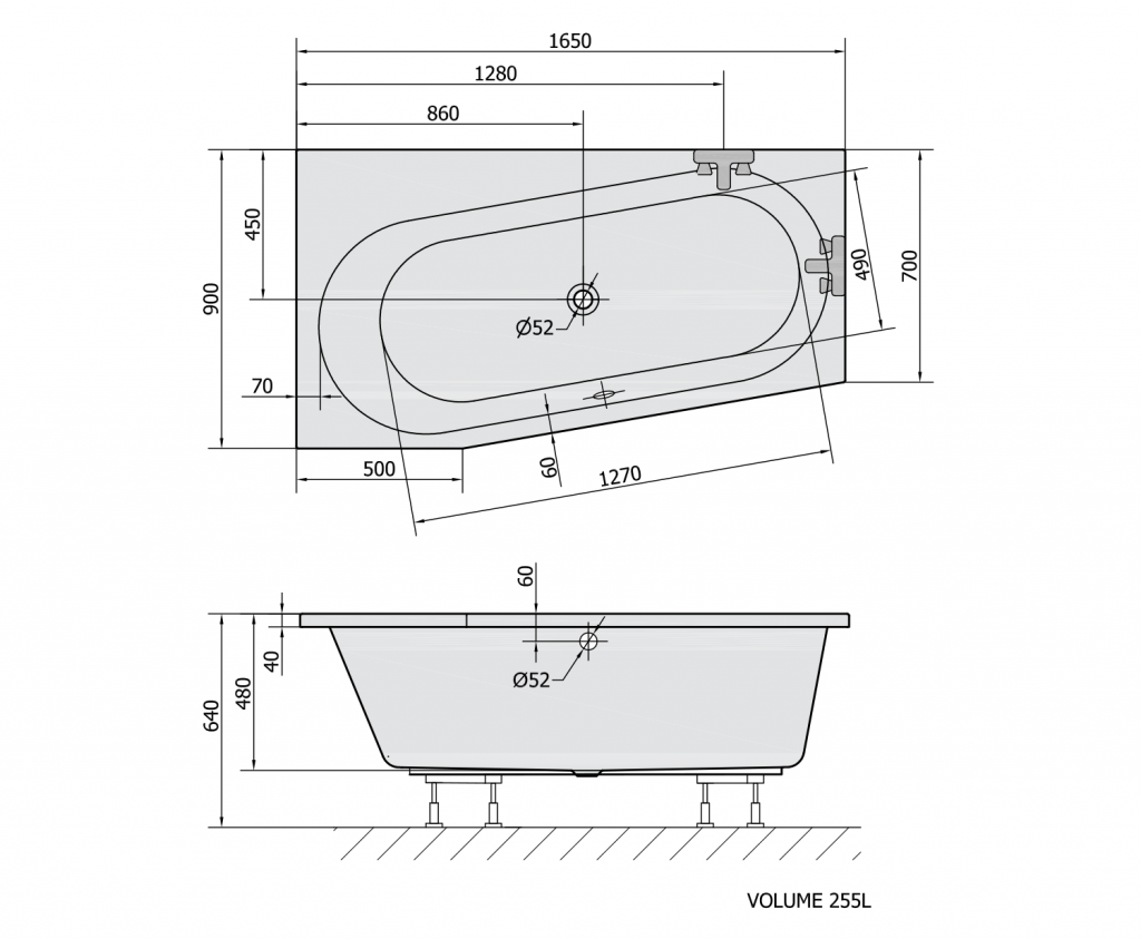 POLYSAN - ASTRA WL asymetrická vana 165x90x48cm, bílá (30611)