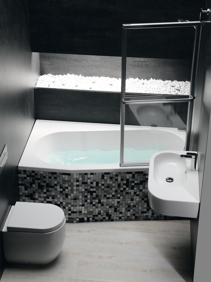 - Asymetrické vany jsou určeny do malých koupelen. V kombinaci se sprchovou zástěnou vyřeší sprchování v malém prostoru.