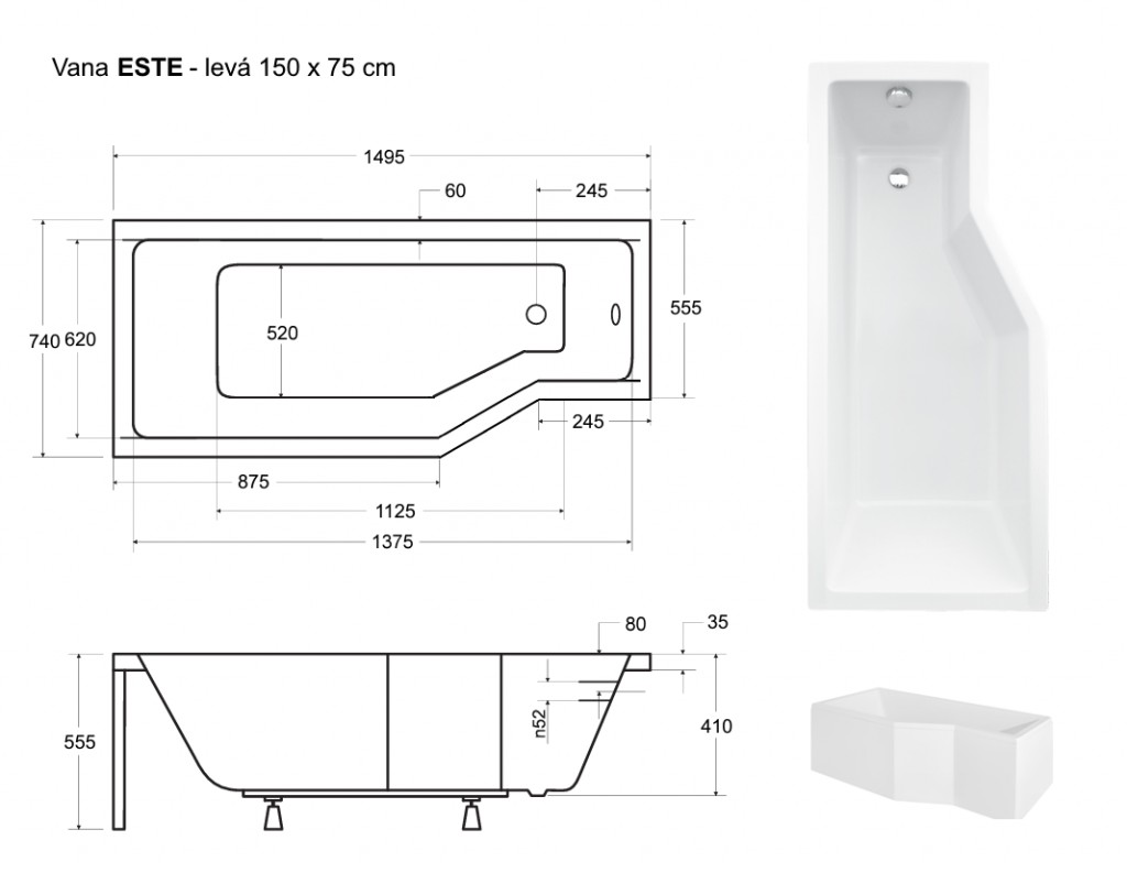 Asymetrická vana ESTE nabízí velice moderní design reprezentovaný ostrými linkami. Vhodná akrylátová vana pro trendy řešení menší koupelny. Její křivky uspokojí i nejnáročnejši zákazníky, kteří hledají nejen esteticky výrazný doplněk své koupelny, ale taky výrobek prémiové kvality. Antibakteriální povrchová úprava zaručuje téměř žádné zachytávání nečistot a zlehčuje údržbu. Nožičky k vaně je nutné dokoupit. Tuto vanu lze za příplatek objednat s povrchovou úpravou BeSafe*.
