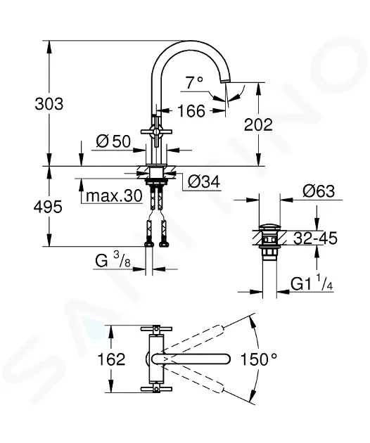 Umyvadlová stojánková baterie s křížovými kohoutky