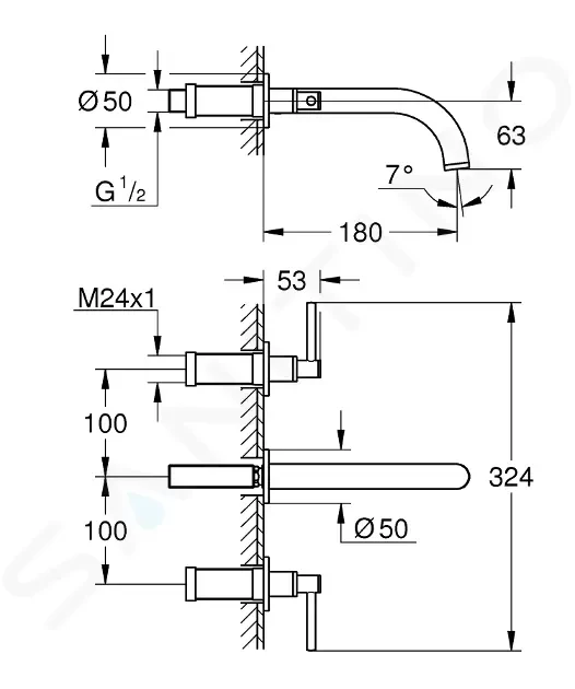 Umyvadlová tříotvorová baterie pod omítku bez tělesa