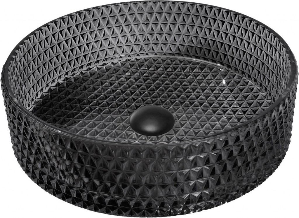 Skleněné umyvadlo AURA je vyrobeno z odolného skla se vzory připomínající křišťálový lustr. Nabízí velmi netradiční vzhled, který odráží dopadající světlo všemi směry.