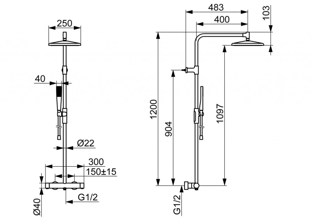 - rozteč 150±15 mm