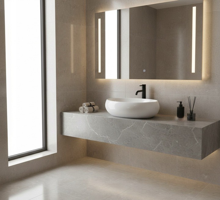 Elegantní oválné umyvadlo na desku AURORA značky BASARO v bílé barvě. Díky svému oválnému tvaru a elegantnímu designu se skvěle hodí do moderních koupelen, především jako dominantní prvek na otevřenou umyvadlovou desku z kamene, dřeva nebo kompaktního laminátu.