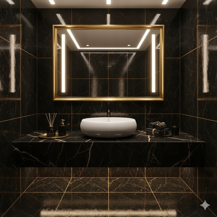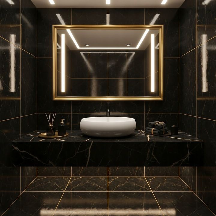 - Umyvadlová baterie – Ideálně vysoká stojánková baterie montovaná na desku vedle umyvadla. Vhodné jsou např. modely s výškou 25–30 cm v černé, bílé nebo chromové variantě dle stylu koupelny.