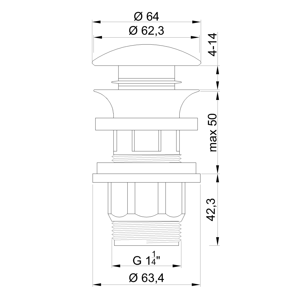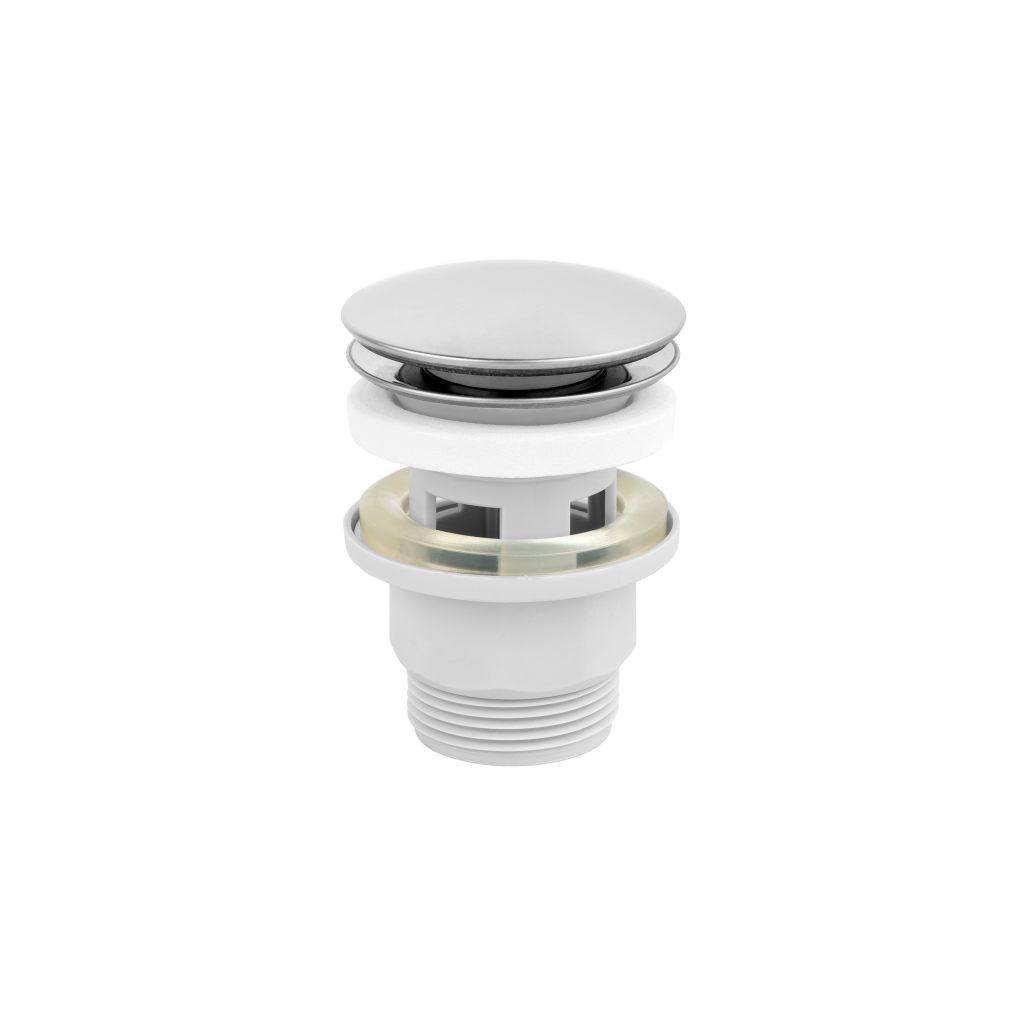Umyvadlová zátka klik-klak /uzavírání a otvírání pomocí stisku horní zátky/ pro umyvadla s přepadem. Je určena k zakrytí umyvadlového odpadu.