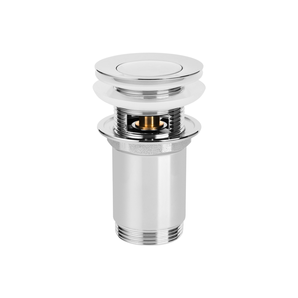 Umyvadlová mosazná zátka klik-klak /uzavírání a otvírání pomocí stisku horní zátky/ pro umyvadla s přepadem. Je určena k zakrytí umyvadlového odpadu.