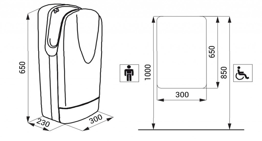 - reaguje na přítomnost rukou ve štěrbině automatickým spuštěním ofuku